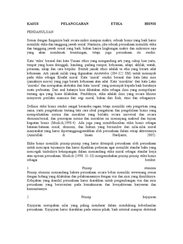 Anda mengelola keuangan perusahaan secara lebih praktis dan akurat. Pelanggaran etika dapat terjadi di mana saja, termasuk di dalam dunia bisnis. Beberapa contoh kasus fraud atau kecurangan dalam akuntansi ataupun laporan keuangan yang dilakukan oleh perusahaan di indonesia. Contoh kasus di beberapa perusahaan pelanggaran etika bisnis manipulasi laporan keuangan pt kai dalam kasus tersebut, terdeteksi adanya kecurangan dalam . Dari kasus diatas terlihat bahwa perusahaan melakukan pelanggaran etika bisnis.